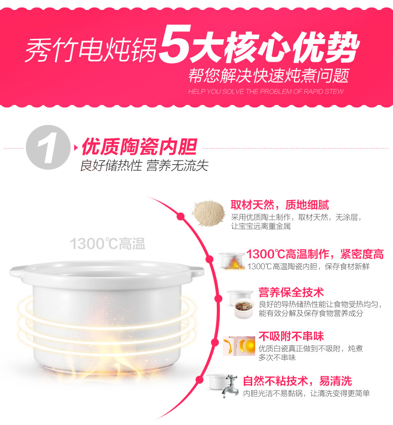 陶瓷慢炖锅:使用好的陶瓷内锅,节省清理时间,享受每顿饭。